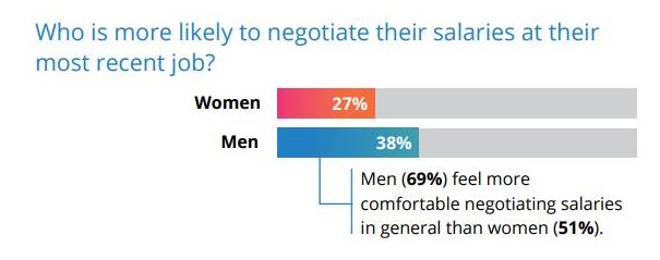 К сожалению, исследование Jobvite 2019 года показывает, что только 33% людей действительно беспокоятся о переговорах о своей зарплате. В разбивке по полу, для женщин цифры еще ниже: только 27% обсуждают зарплату.